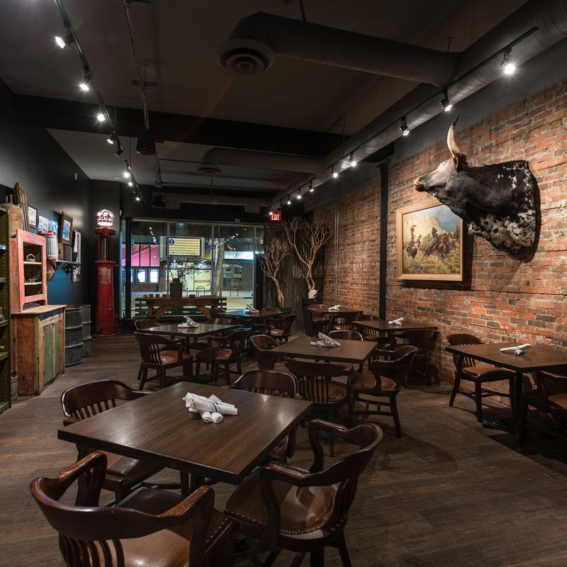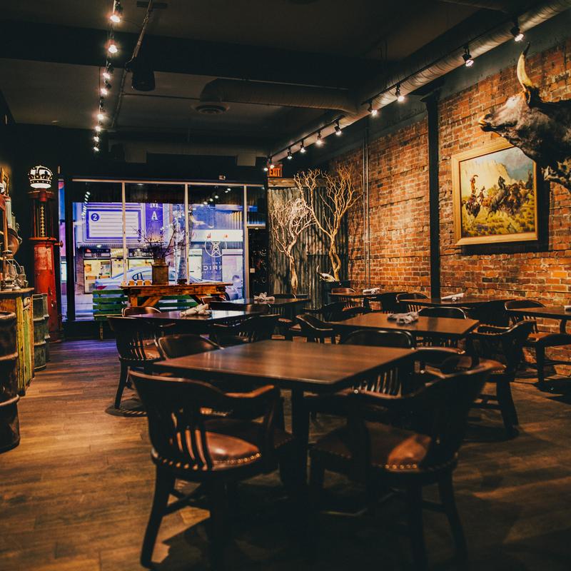 Nestled in the heart of Calgary, The Derrick embodies a true Albertan experience, paying homage to the province’s rich history of oil, ranching, and western charm. With a cozy, saloon-inspired atmosphere, our space celebrates Alberta’s roots, from the bison head proudly displayed behind the bar to the steer head overseeing the dining room.