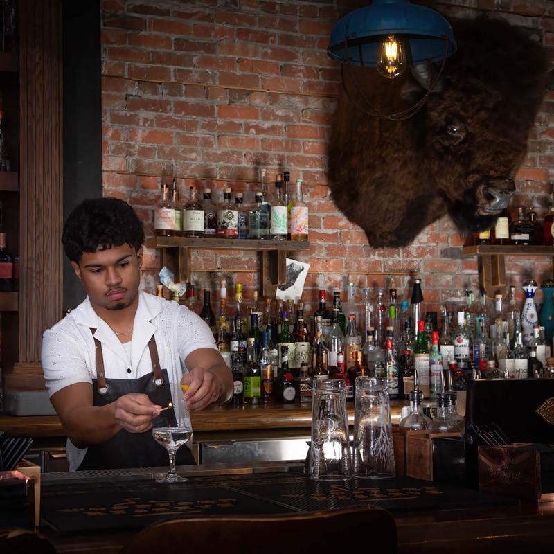 Our food menu features locally sourced ingredients, including Alberta beef, and showcases traditional classics and seductively smoked meats—crafted to comfort and delight without being confined to a barbecue label. Complementing the menu is Canada’s largest gin selection and a cocktail program as unique as Alberta itself. Every drink is a multi-sensory experience, crafted with house-made ingredients, house-made bitters, and a deep appreciation for the art of mixology.